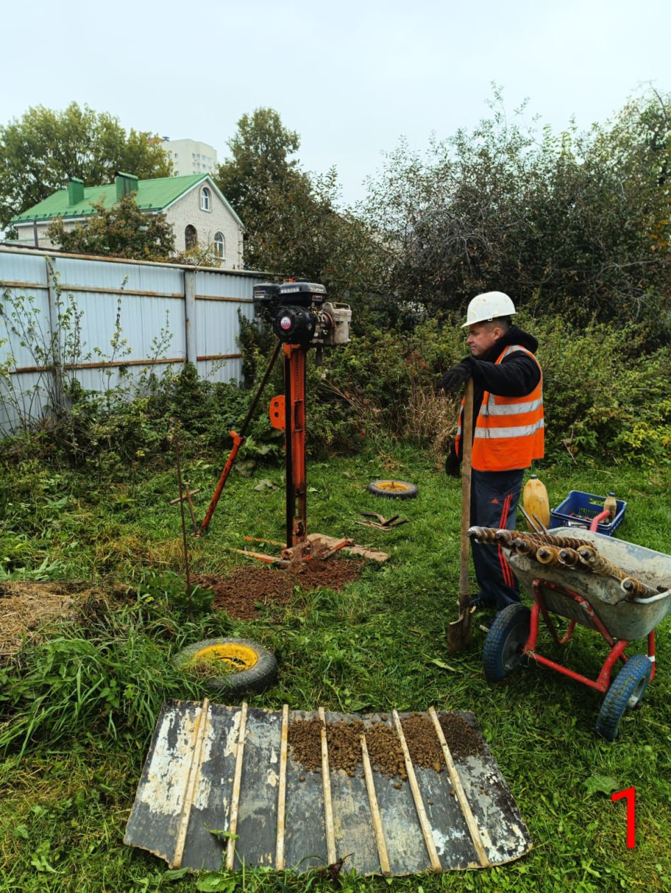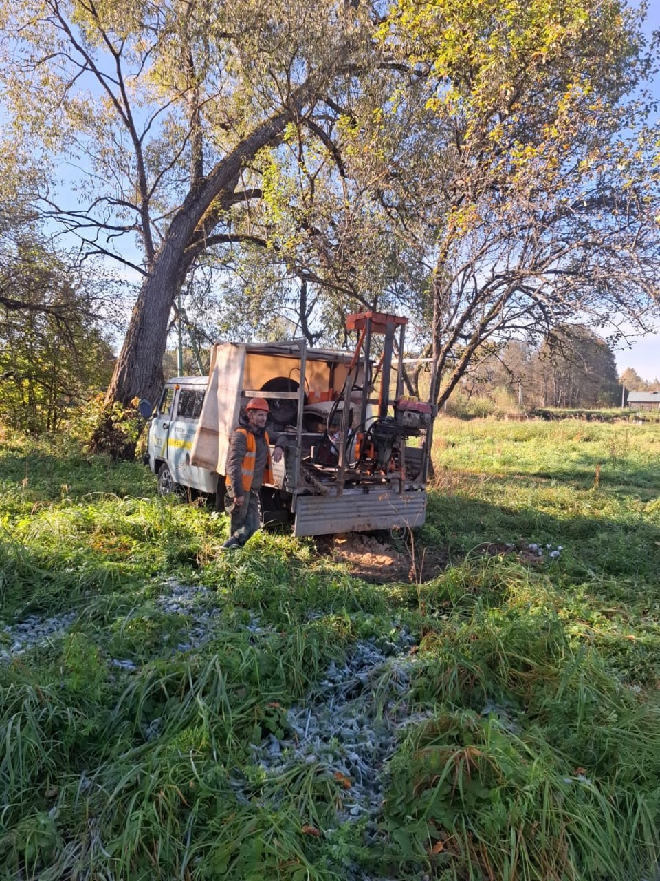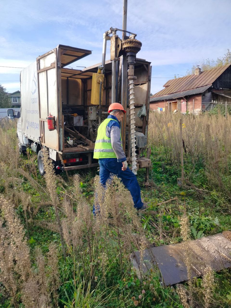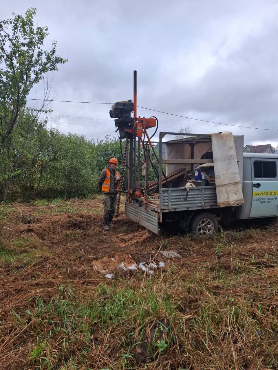 В выбранный день на ваш участок приедет команда из двух человек (геолог-буровик и его помощник) на буровой установке.